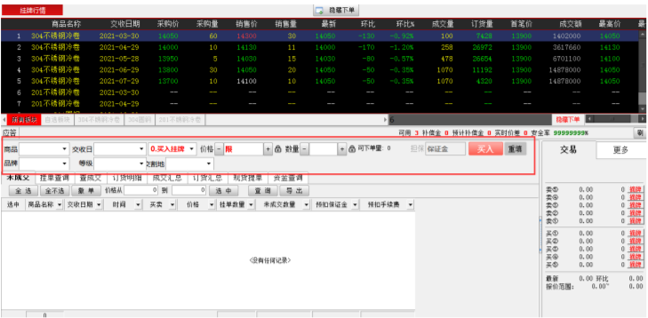 3. 交易查询:可查询成交结果,未成交情况,买卖数量及当日的所有委托单。