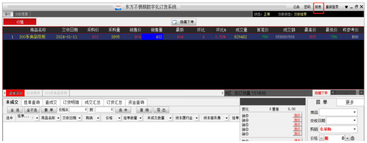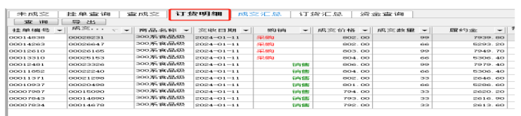 客户可在查询栏“订货明细”或“订货汇总”中查询截止目前所有的未做变更的订货,如图 5-11。