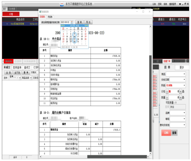 4. 报表查询:可以随时查看某一交易日或者某个月的报表,方便交易客户核对其资金情况。