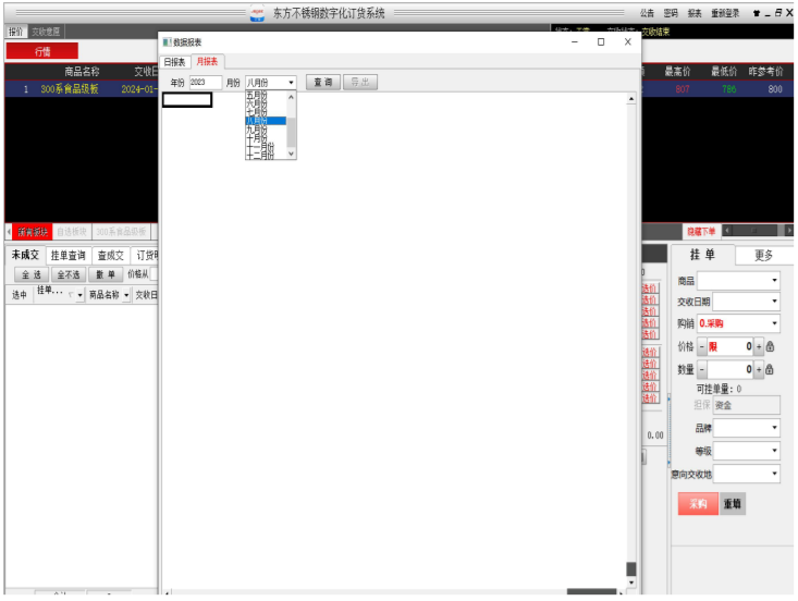 每日交易结束后,可点击右上角“报表”按钮(图 4-10),选择交易日期查询日报表(图 4-11),也可查询月报表(图 4-12)。