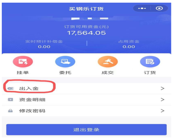 客户通过网银转账至指定银行账户的方式进行入金。出金通过微信程序或买钢乐商城官网操作: