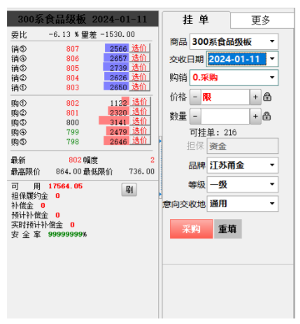 客户的可用资金和挂牌价格等信息计算出最大可下单量。