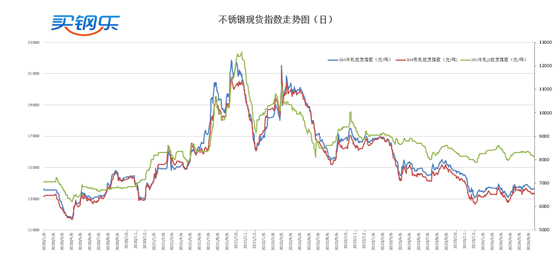 今日304不锈钢现货报价方面,无锡市场的主流报价304冷轧报价为13500元/吨,304热轧报价为13300元/吨,201J2冷轧报价为8100元/吨。
